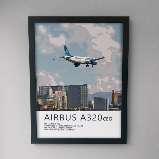 United Airlines Airbus A320 & Las Vegas Skyline Poster