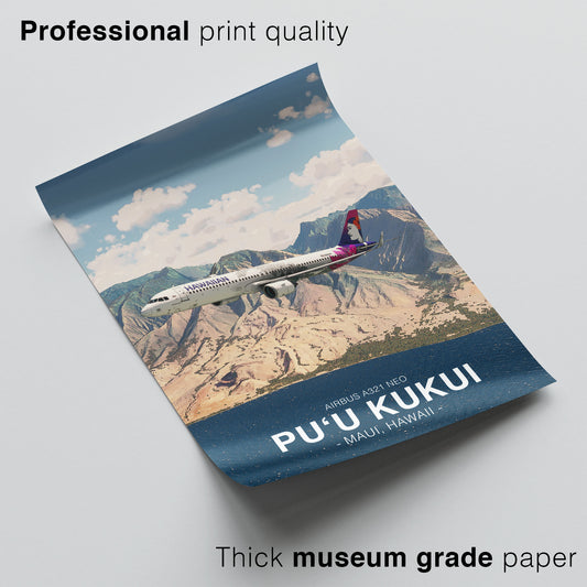 Hawaiian Airlines Airbus A321 NEO Poster - Pu'u Kukui Hawaii