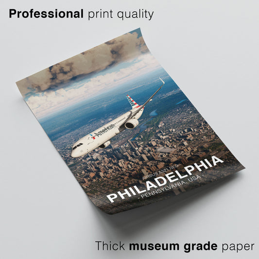 American Airlines Airbus A321 NEO Poster - Philadelphia Cityscape