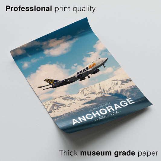 Atlas Air Boeing 747 Poster - Anchorage Alaska Landscape