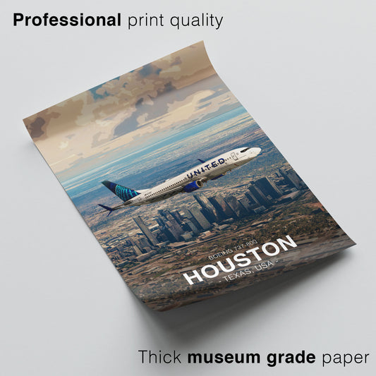 United Airlines Boeing 737 Poster - Houston Cityscape